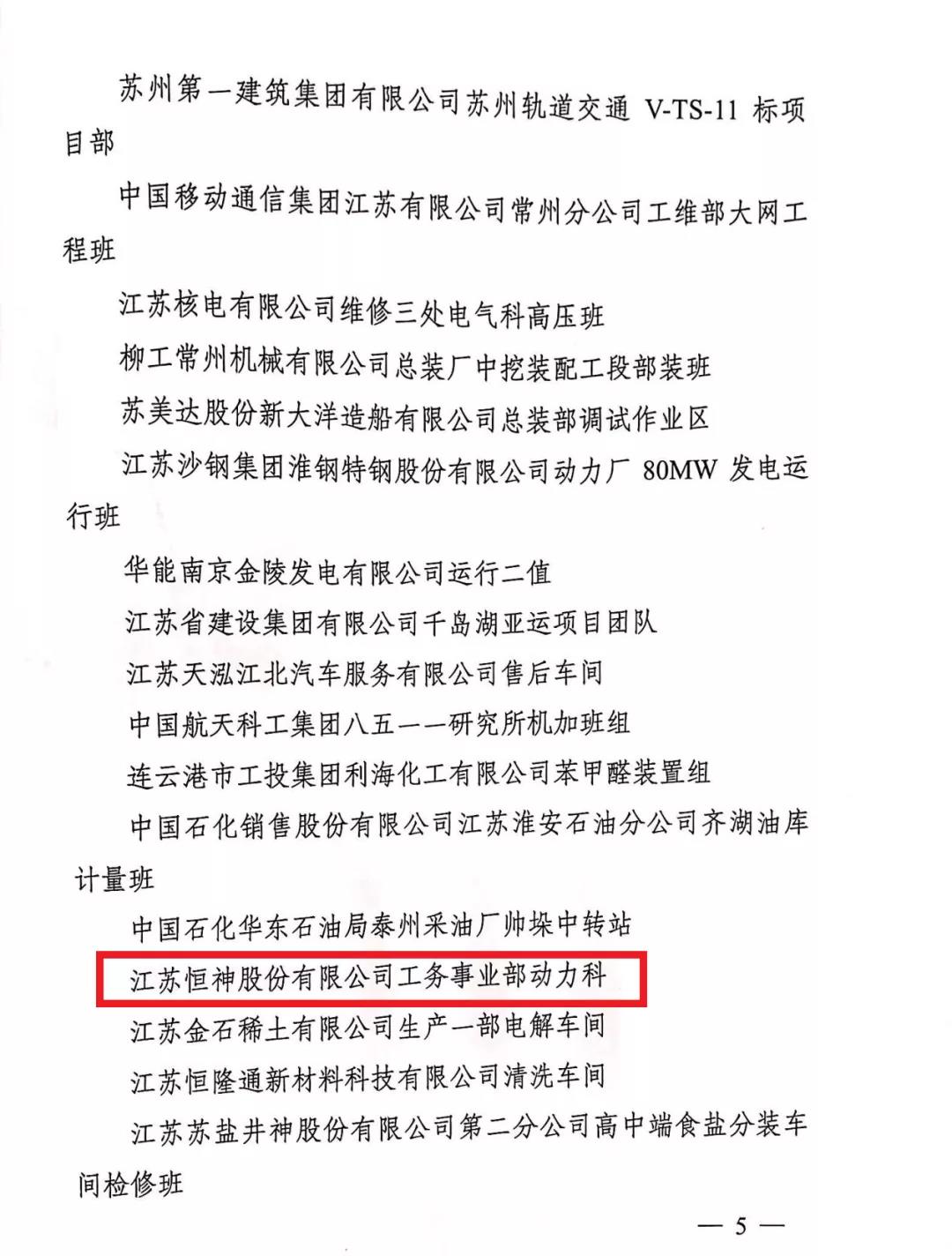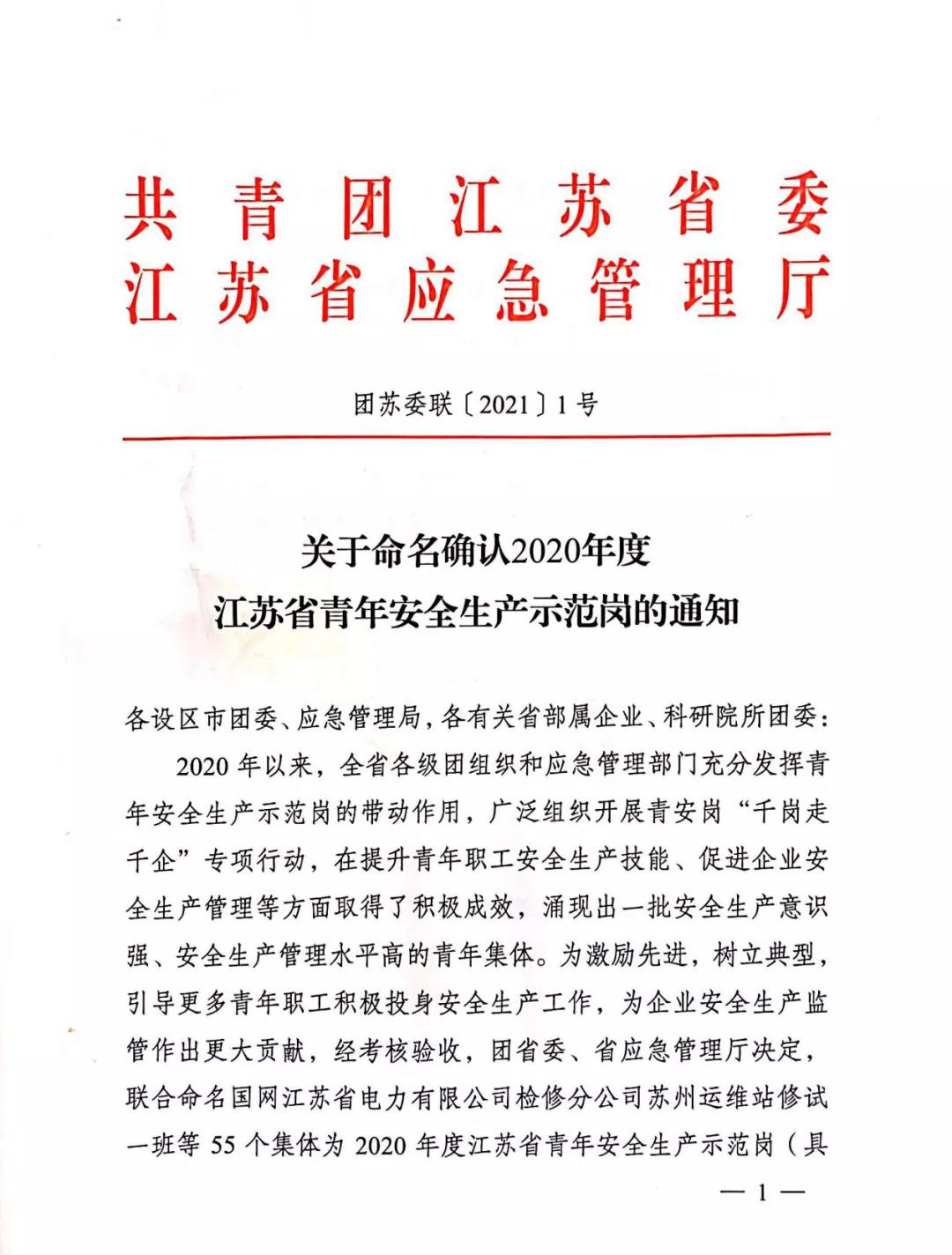 近日,共青團江蘇省委、江蘇省應急管理廳公布了獲得“2020年度江蘇省青年安全生產(chǎn)示范崗”榮譽稱號的集體名單,江蘇恒神股份有限公司工務事業(yè)部動力科獲評“2020年度江蘇省青年安全生產(chǎn)示范崗”。
